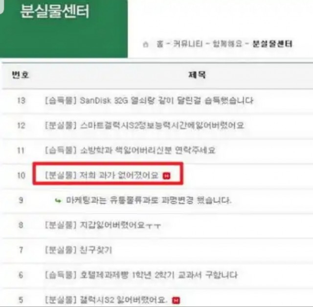 분실물 레전드 저희 과가 없어졌어요 웃긴 슬픈 드립 짤